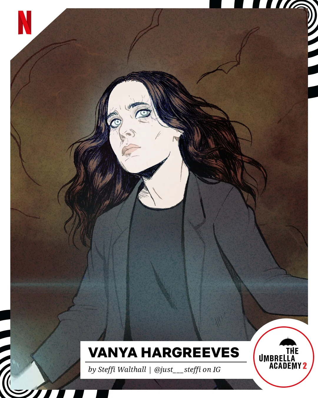 One of seven top comic-book artists picked for the project, Steffi created a dark and powerful image of Vanya mid-action to promote the new Netflix series. You can see the full article and all the illustrations here :https://www.complex.com/pop-culture/2020/07/netflix-the-umbrella-academy-welcome-back-season-2