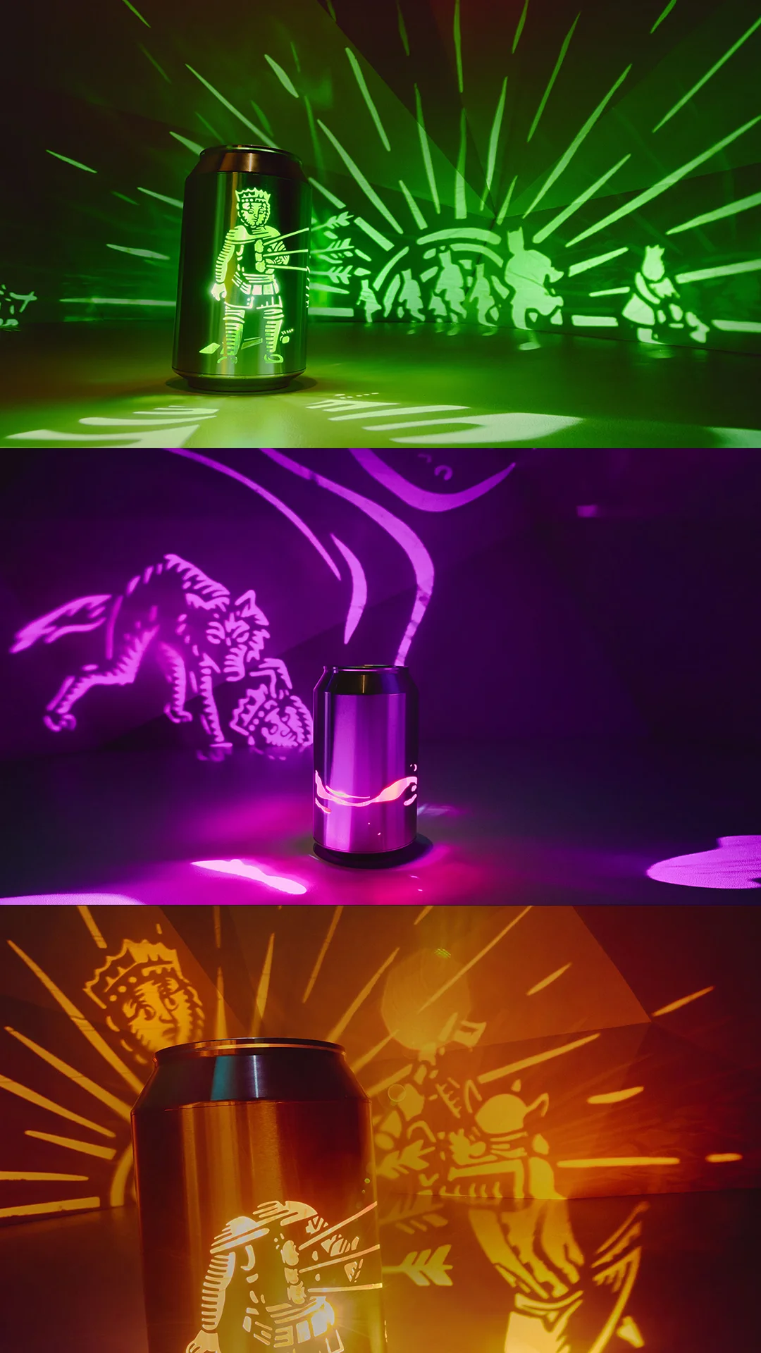 Illuminated from within, the cans project each frame to create a constantly evolving backdrop while wheeling camerawork swings in an action packed scene. Can't wait to see what that looks like? here it is...
