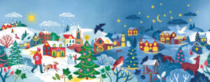 Winter Village_Musical Biscuit tin_Seamless Day to night guide_F – Lucy Davey Illustrates the Waitrose 2023 Christmas Gift Collection (Design Projects, illustrator, The Artworks)