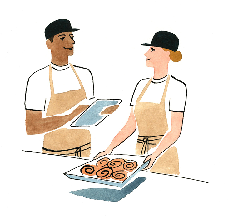 Sarah McMenemy was commissioned by Gail’s Bakery to produce a range of illustrations depicting different staff roles in the company.