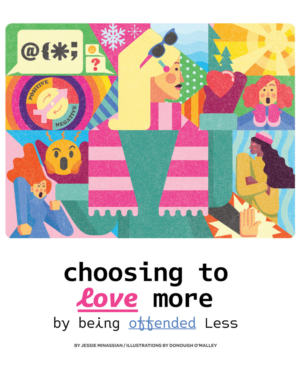 Donough used his signature colour-blocked energy and expressive character work to a recent editorial commission for USA's Brio magazine. The article, titled Choosing to Love More by Being Offended Less, offers young readers practical, values-based advice on emotional resilience and empathy.